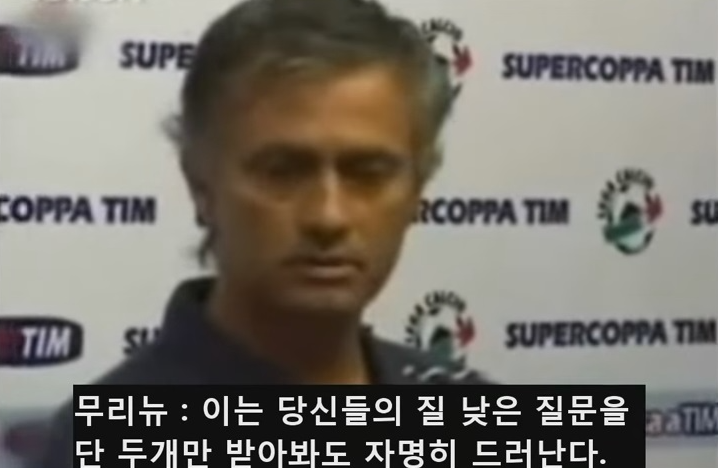 이같은 대답에 화가 난 중국 기자는 당신의 사생활은 문란하던데, 중국 여자들을 보니 흥분되는가? 라는 희대의 병맛 질문을 던졌습니다. 이에 무리뉴는 '딱 두 질문만 들어도 너희들의 수준을 알겠다. 중국이 축구를 못하는 이유는 기자들이 쓰레기들 뿐이기 때문이다.' 라는 쇼미더머니에 나올만한 킬링 벌스들을 뱉은 적이 있습니다.
